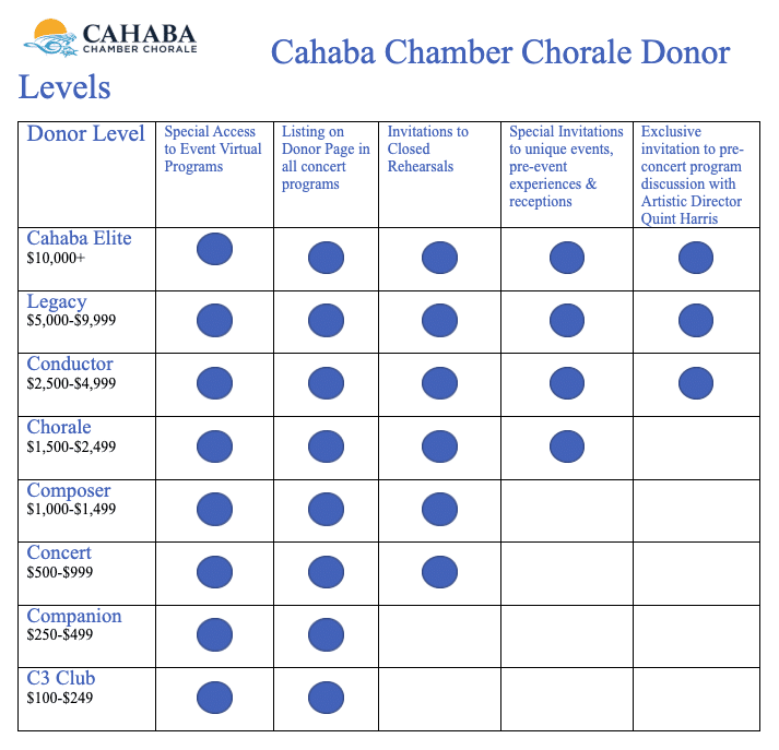 Cahaba Chamber Chorale will exist to serve our community and region, bringing people together and celebrating the common bond we have through the traditions of choral music and singing. We want to foster the human spirit and elevate every individual through the power of voices blended in song.